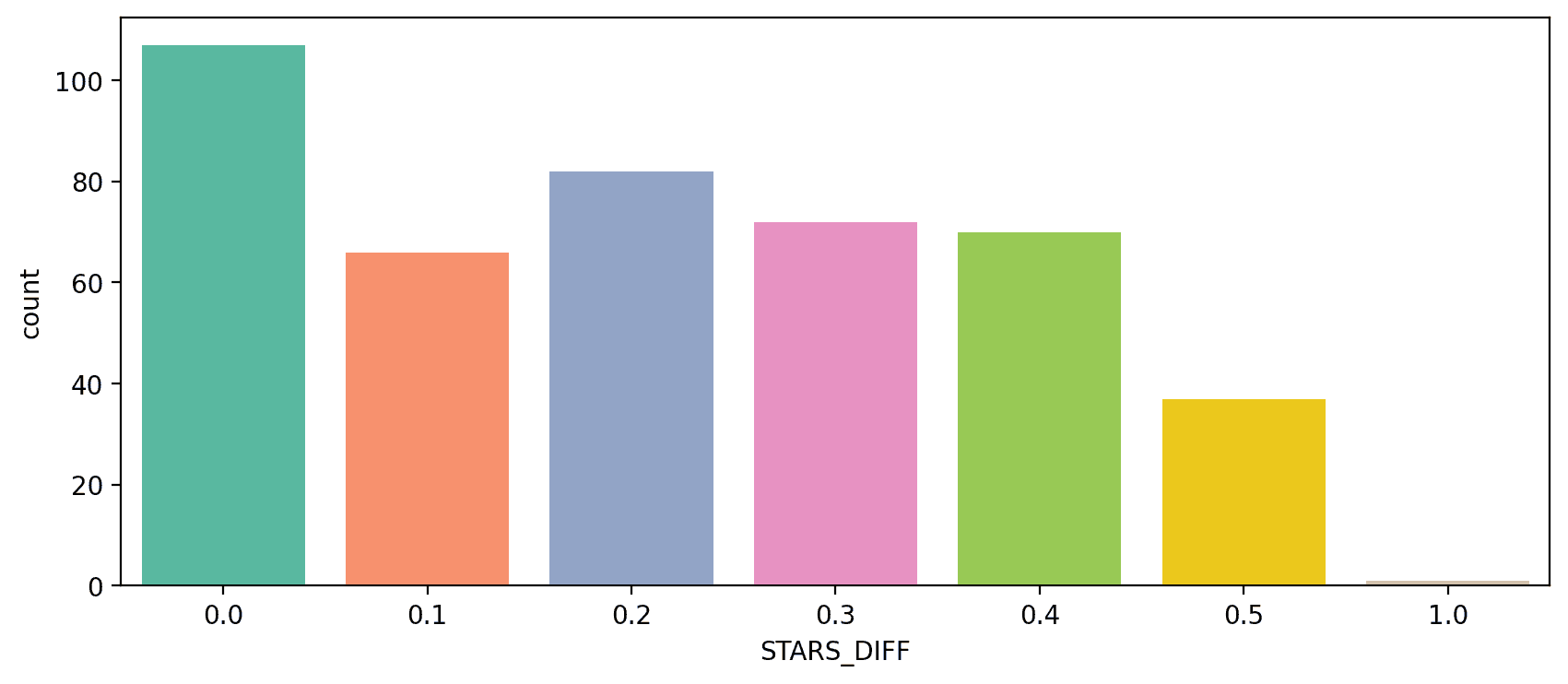 sns.countplot(x='STARS_DIFF', data=fandango,palette='Set2')Distribution of differences: