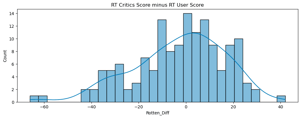 Rotten_Diffvariable: Critics Score - User Score. - Measured and visualized the distribution.
