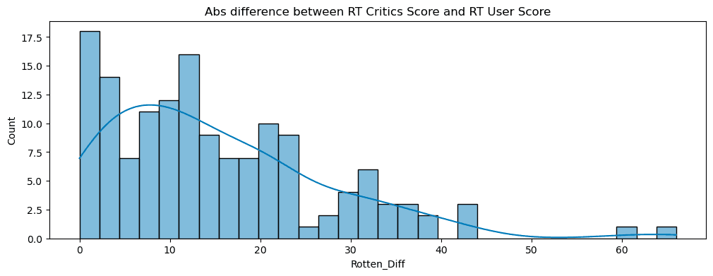 plt.title("Abs difference between RT Critics Score and RT User Score")
