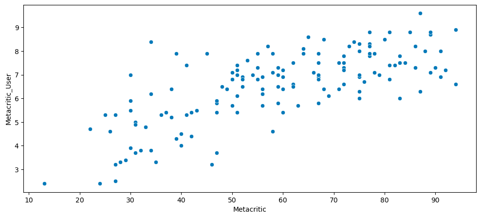 Scatterplot comparing critic ratings and user ratings: